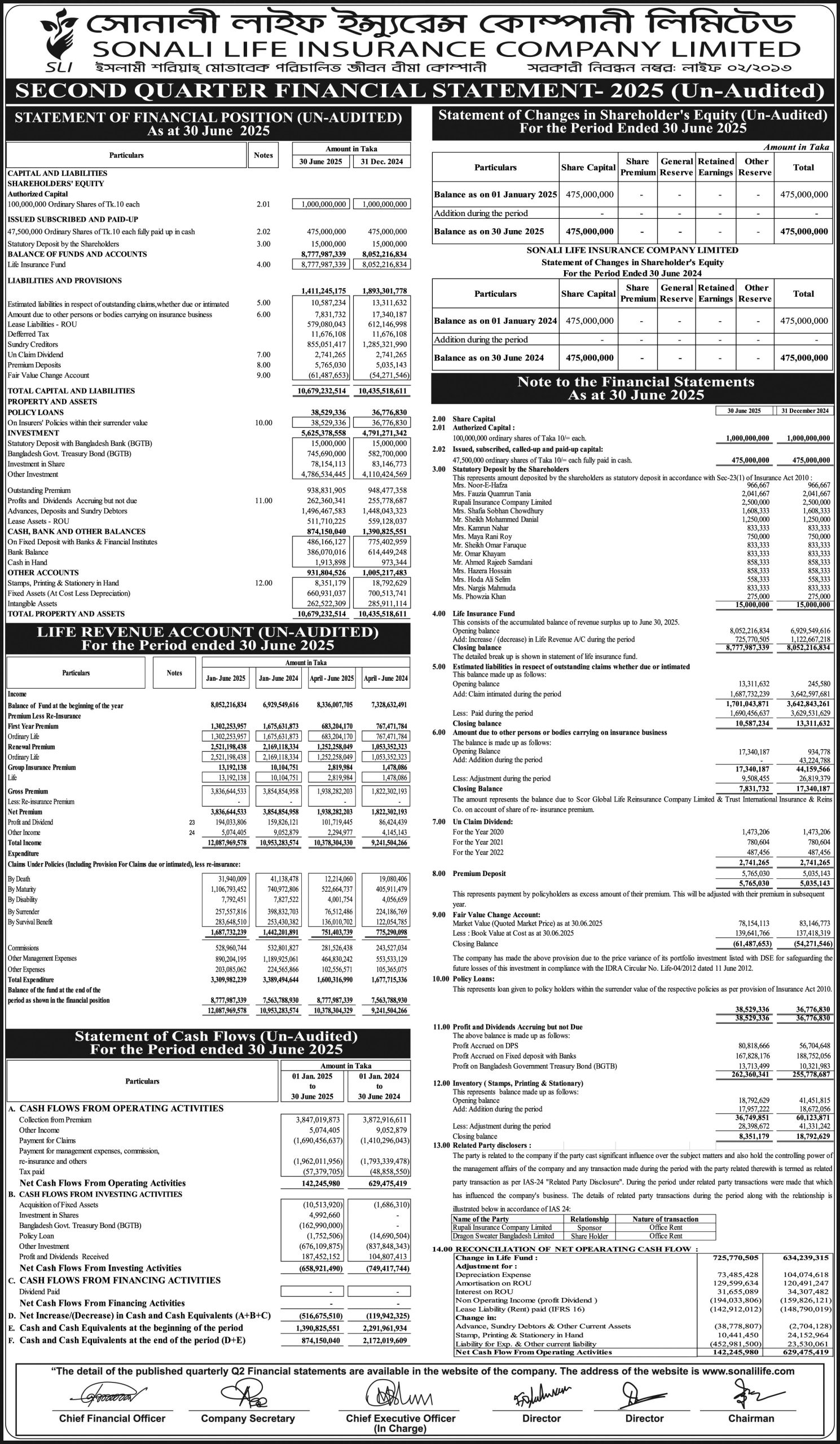 2Q Financial Statement-2025 (Un-Audited) Sonali life Insurence.