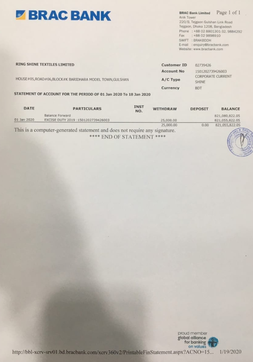 উক্ত ৯ জন বিদেশি পরিচালক কর্তৃক প্রায় ২২ বছর যাবত বাংলাদেশে সুনামের সঙ্গে রিং সাইন টেক্সটাইলের ব্যবসা পরিচালিত হয়ে আসছে। কোম্পানিটি ঢাকা ইপিজেডের প্রায় ২০ শতাংশ এলাকা নিয়ে ব্যবসায়িক কার্যক্রম পরিচালনা করে আসছে। এ কোম্পানি নিয়ে যে গুজব ছড়ানো হয়েছে তা সম্পূর্ণ ভিত্তিহীন। এ ব্যাপারে সাধারণ বিনিয়োগকারীদের সচেতন হওয়ার পাশাপাশি তথ্য নিশ্চিত হতে কোম্পানির সঙ্গে যোগাযোগ করার আহবান জানায় রিং সাইন কর্তৃপক্ষ।