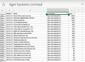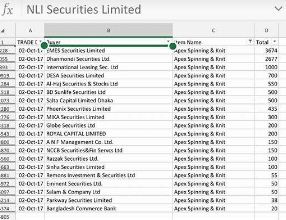 দেখা গেছে, এমেস সিকিউরিটিজ থেকে এপেক্স স্পিনিং ৩ হাজার ৬৭৪টি শেয়ার কেনা হয়েছে। আর ধানমন্ডি সিকিউরিটিজ থেকে ২ হাজার ৬৭৭টি, ইন্টারন্যাশনাল লিজিং থেকে ১ হাজার টি, ডেসা সিকিউরিটিজ ৭০০টি, আলহাজ্ব সিকিউরিটিজ থেকে ৫৫০টি, বিডি সানলাইফ সিকিউরিটিজ থেকে ৫০০টি, সালতা সিকিউরিটিজ থেকে ৫০০টি, ফনিক্স থেকে ৪৩৫টি, মিকা সিকিউরিটিজ থেকে ৩০০টি, গেøাব সিকিউরিটিজ থেকে ২০০টি, রয়েল ক্যাপিটাল থেকে ২০০টি,